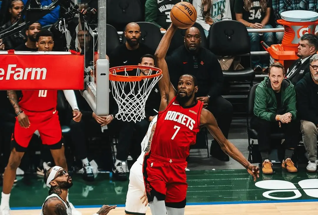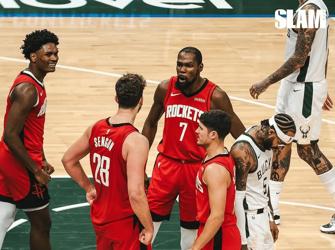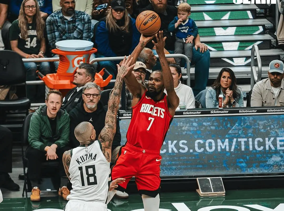 北京时间11月10日,NBA常规赛,雄鹿坐镇主场迎击火箭。本场比赛之前,火箭战绩5胜3负,雄鹿6胜3负,两队都是季后赛级别的强队。火箭虽然开局胜率一般,但输的都是强队,在场上展现出的统治力,还是很震撼的,杜兰特刚加盟就能很快融入队伍中,申京,阿门等年轻核心也在快速成长,只是可惜范乔丹受伤了。另一边的雄鹿,虽然今夏告别了利拉德,但他们也补强了角色球员,依然保持着不错的阵容强度,最关键的一笔引援是特纳的加盟,内线字母哥+特纳,还是有点威慑力的。而字母哥本赛季状态爆棚,场场都能拿到炸裂数据。