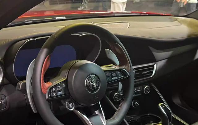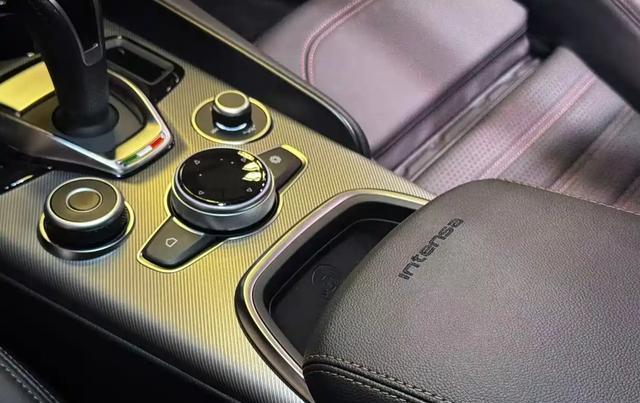 Giulia Intensa版内饰没有太多的新鲜感,环抱式的中控台采用了非对称式设计,并加入了很多轻量化的软性材质、碳纤维材质和Alcantara面料,保障了柔软质感的同时,也更具视觉冲击力。桶装式赛车座椅、黑色撞色搭配、炮筒式空调出风口和仪表盘的设计,再加上红色的一键启动按钮,再也压抑不住驾驶者内心的欲望。INTENSA版采用INTENSA限定座椅设计,头枕上清晰可见褐黄色缝线徽标,以及非常醒目的拼色搭配方向盘,中控台和门内饰板上部区域有特别的真皮包裹带缝线,前排扶手箱上也有INTENSA标识。科技感方面,该车配备了炮筒式指针仪表盘、大尺寸全液晶仪表、总功率达到900W的Harman / Kardon剧院式14扬声器(含低音炮)音响系统。