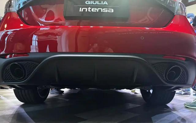 Giulia Intensa版整车采用了法拉利激情红色的车漆涂装,轿跑式的车身轮廓、弧线形的车顶黑色的车窗装饰边框,水滴形的倒车镜外壳(还带有意大利国旗配色的徽标),再加上黑色的全车隐私玻璃,营造出浓郁的意大利风情。19英寸的花瓣式轮圈搭配着Alfa ROMEO轮组盖,并配备了前225/40 R19、后255/35 R19的轮胎。车身尺寸方面,Giulia朱丽叶 INTENSA版没有变化,长宽高分别为4,643/1,860/1,438mm,轴距2820mm。车内采用了标准的5座布局,前排配备了两个赛车桶装座椅,刻意加宽加厚的侧翼,也为前排乘客提供了更好的包裹性和支撑性,能够感受到赛车的乘坐氛围感。后排配备了舒适的沙发座椅,很有意大利格调。